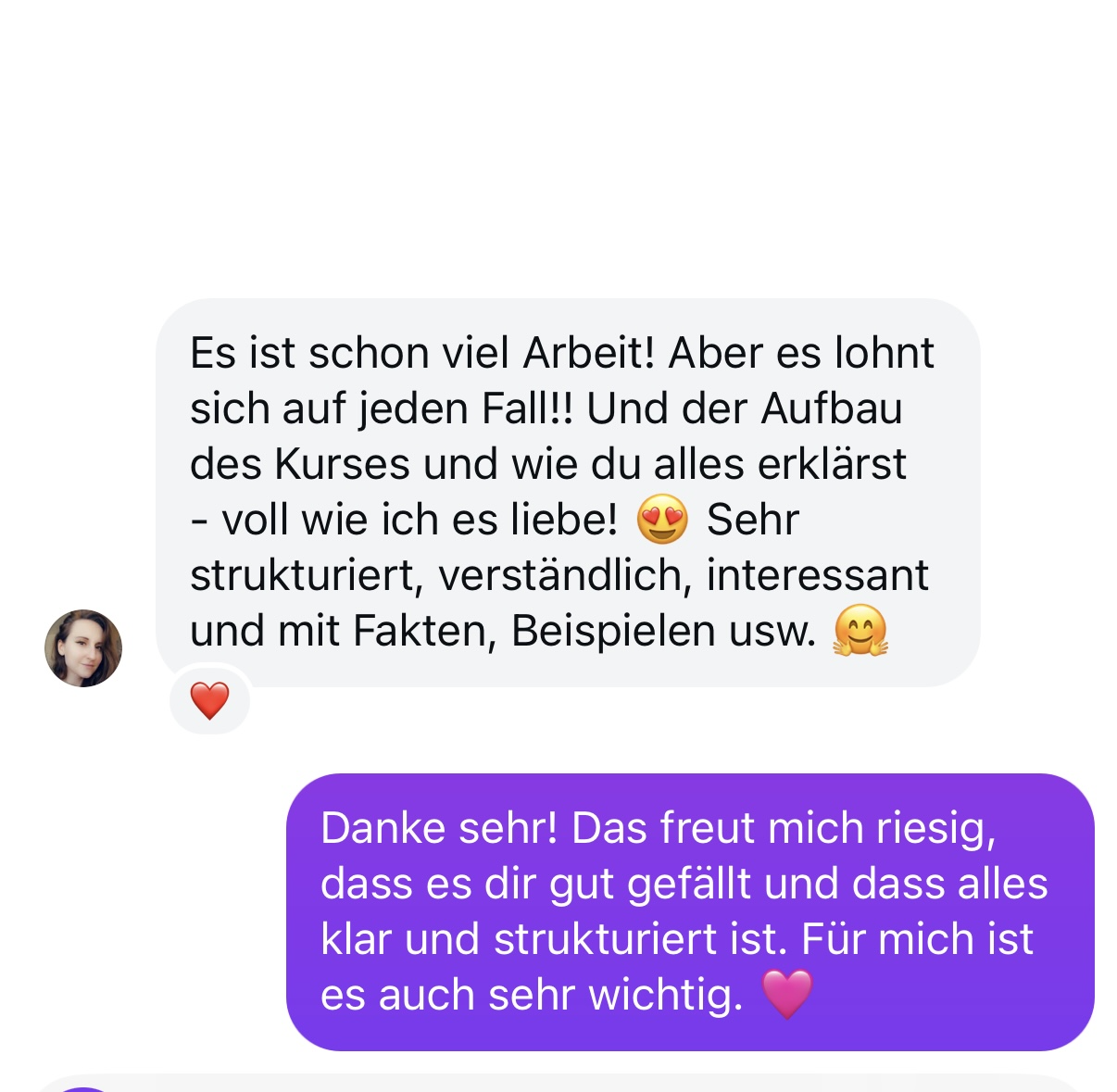 VIP Chat mit Katja für Fragen zum Kurs und den Austausch mit anderen Studenten