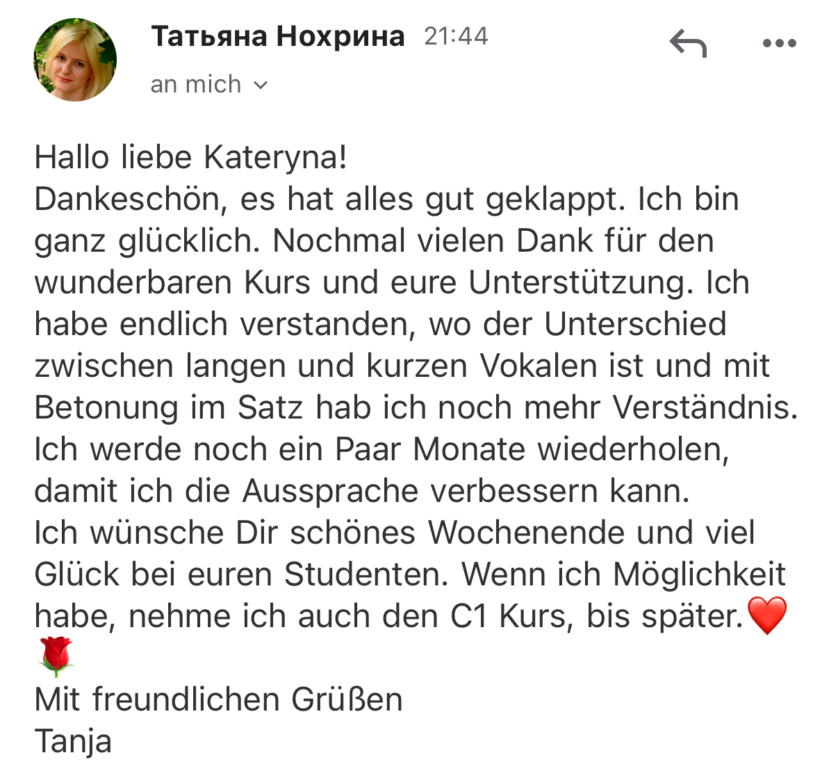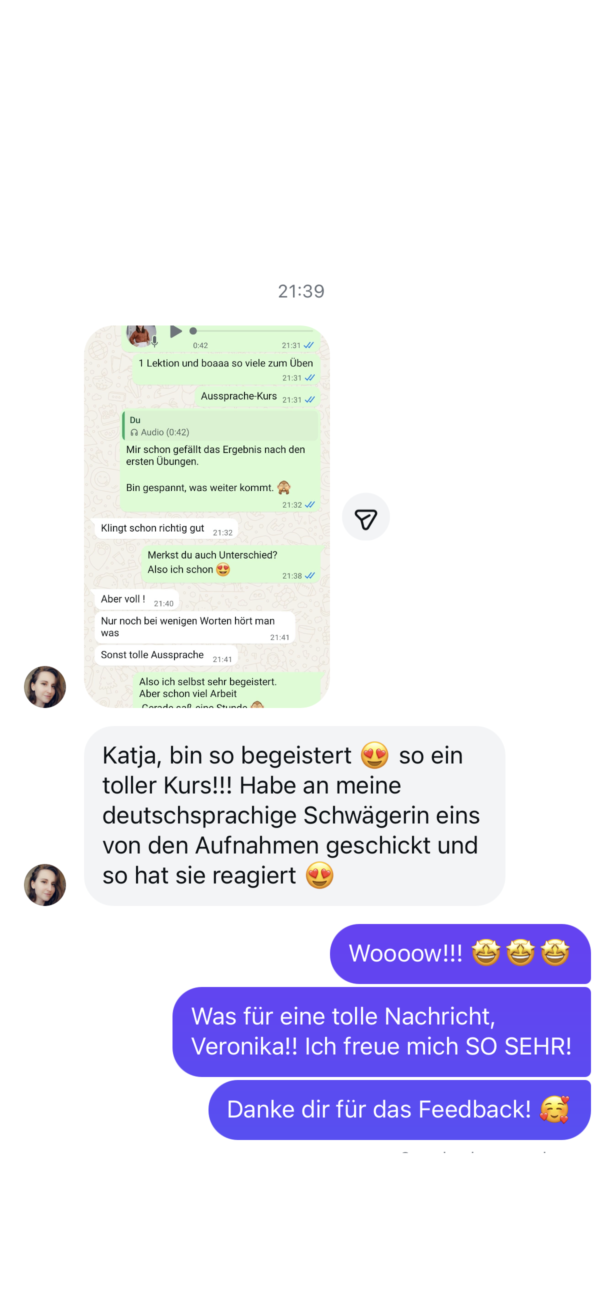 * Dieser Tarif ist perfekt für dich, wenn du fleißig, hochmotiviert und bereit bist, deine Aussprache persönlich von Katja korrigieren zu lassen, und sehr intensiv mit Lisa und Katja an deiner Aussprache zu arbeiten.